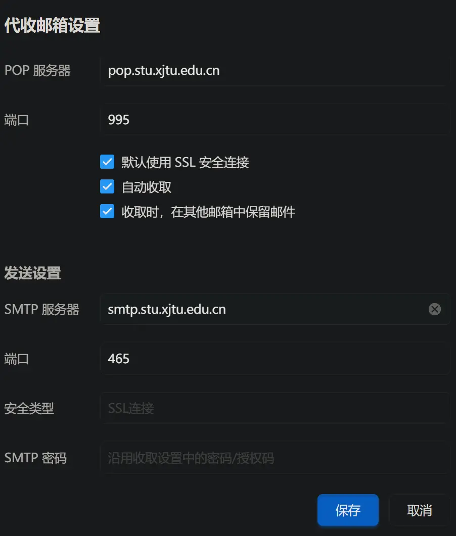 西安交通大学邮箱对第三方客户端使用专用密码登录,在设置代收之前,需要先获取专用密码。